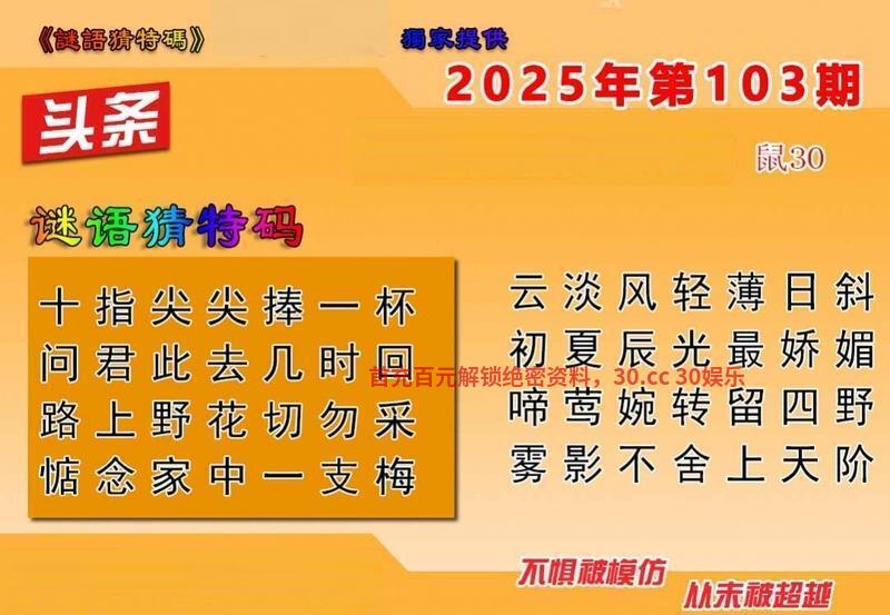 106期六合头条【解迷语猜特码】 豪贵大堆酬曲彻 离别故人扬执戟 千军万马皆听命 战场杀故保家国 解译:大堆,大解大数,家园,家解家禽 九肖:兔虎狗羊牛鸡马猪鼠 |